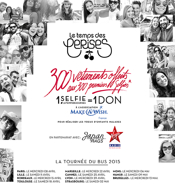 Cette opération se déroule depuis début avril et jusqu’au 13 mai. Il s’agit d’un roadshow solidaire en compagnie de l’association « Make a wish » pour soutenir une très belle action ! Le principe est simple : un selfie contre un don pour l’association. Très simple à réaliser pour nous et en plus de cela la marque offre 300 vêtements aux 300 nouveaux selfies !